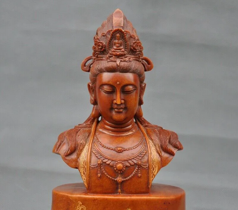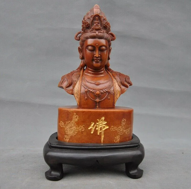 Review Top wedding decoration Natural Shoushan Stone carved goddess Kwan-yin Guanyin Buddha head bust statue